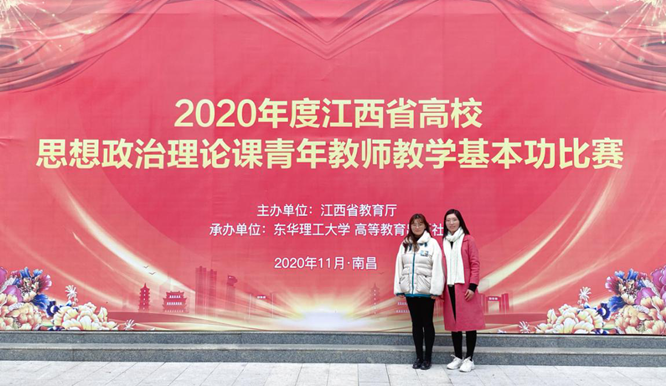 11月28日至29日,由江西省教育工委、江西省教育厅举办的“2020年度江西省高校思想政治理论课青年教师教学基本功比赛”在东华理工大学举行,来自全省79所高校的200余名思想政治理论课青年教师参加比赛。公司思政课青年教师孙莹、席玉玲分别获得《思想道德修养和法律基础》高职高专组一等奖、《毛泽东思想和中国特色社会主义理论体系概论》高职高专组三等奖。