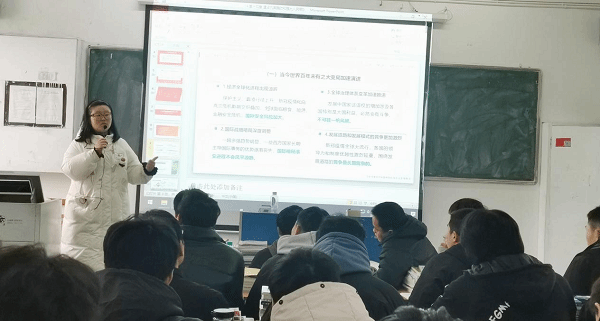 在孙莹老师讲授的《习近平新时代中国特色社会主义思想概论》的课堂上,左乐平和王国兵聆听了主题为“建设巩固国防和强大人民军队”的教学内容。孙莹从时事热点出发,围绕“为什么要建设巩固国防和强大人民军队,怎样建设巩固国防和强大人民军队”展开专题化问题式教学。孙莹授课层层推进,紧扣授课主题,结合高职员工的认知特点和兴趣话题,充分调动员工的积极性,授课逻辑清晰,论证充分,收到了良好的教学效果。课后,左乐平和王国兵对孙莹的授课情况进行了点评,对她的授课内容和教学方式给予了高度肯定,并就教学效果的提升进行了一些交流。