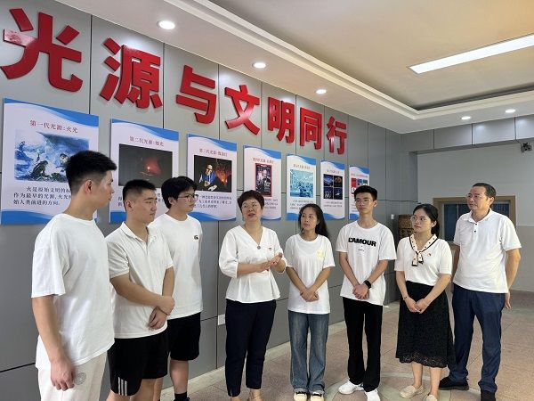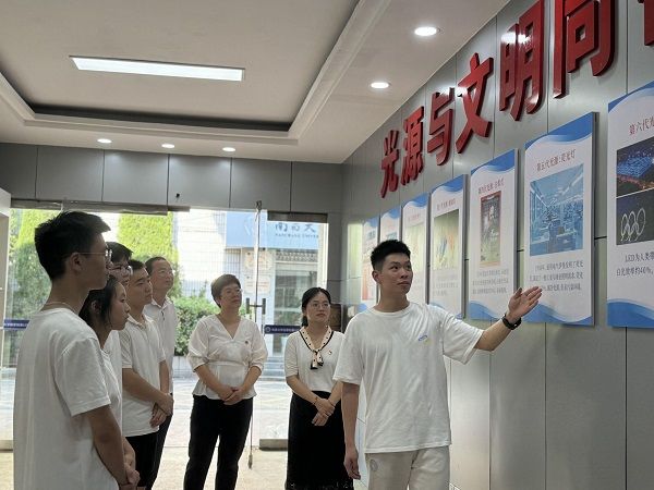 参观学习:光源与文明同行。科技在进步,文明在升级,光源与人类文明一路同行。在南昌大学国家硅基LED工程技术研究中心,讲解员详细介绍了光源的发展历程,激发了师生们的求知欲,更为他们注入了前进的动力。