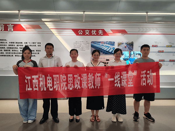 刘思、朱秀琴、张甜甜、余仁鑫四位思政课教师带领员工赴南昌公交集团,在南昌公交集团展示馆,师生们先后参观了公交优先、党建引领企业文化建设、艰苦奋斗、奋进崛起、创新提速和智创未来六大展区,通过全面了解南昌公交70多年来的发展历程和文化传承,师生们深刻体会到中国共产党坚持以人民为中心、践行以人民为中心的理念,感受到在党的领导下,南昌公交集团服务百姓的一颗赤忱之心。