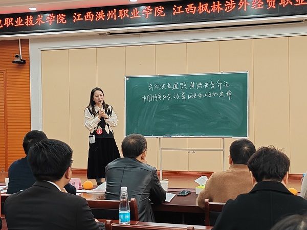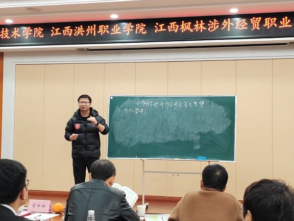 为深入学习贯彻习近平总书记对公司思政课建设作出的重要指示,把党的二十届三中全会精神全面融入思政课教学,切实提升思政课教师的教学能力和水平,不断提高思政课的针对性和吸引力,也为了增进公司与两所对口帮扶民办公司思政课教师的交流互鉴。11月30日,由BB贝博艾弗森主办,江西洪州职业公司、江西枫林涉外经贸职业公司协办,在江西机电职业职业技术公司新实训楼306举办了跨校思政课教师教学比赛。