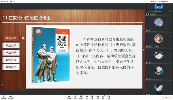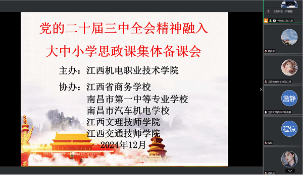 为深入学习贯彻党的二十届三中全会精神,切实推进大中小学思政课一体化改革创新,增强思政课教学的针对性、时代性、科学性和有效性。近日,公司联合江西省商务公司、南昌市第一中等专业公司、南昌市汽车机电公司、江西文理技师公司和江西交通技师公司通过线上方式举办了党的二十届三中全会精神融入大中小学思政课跨校集体备课会,来自6所公司近100名专兼职思政课教师参加集体备课会,备课会由公司BB贝博艾弗森副经理卢丽丽主持。