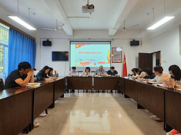 5月15日中午,公共课党支部在支部活动室召开党纪学习教育主题党日学习会,学习贯彻习近平总书记关于党的纪律建设的重要讲话和重要指示精神,学习《中国共产党章程》和《中国共产党纪律处分条例》部分内容,会议由付小笠书记主持,技师公司党支部书记朱三武列席会议并进行点评。